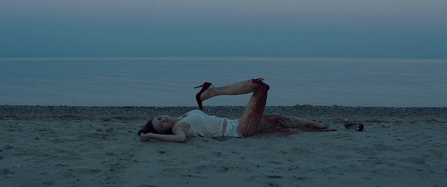 Porque luego de un inicio algo flojo (no la primera secuencia, sino la presentación de la protagonista y sus sosos amigos), nos metemos de lleno en la intrigante y electrizante acción que nos ofrece este juego de "tú las traes" (más o menos) que no deja de extrañar en ningún momento, al menos al inicio. Posteriormente, el director intercala escenas de la cotidianidad de esta chica (ya afectada por la constatación de la veracidad del juego) en que suceden pobres y patéticos coqueteos, lecturas de Dostoyevski que es obvio que no están ahí por azar (lo que a su vez nos dice que el director es muy culto y que tiene muchas cosas que decirnos), para luego volver a este juego que ya por la cuarta vez pierde todo misterio y gracia, puesto que el director lo ha banalizado y sobre-utilizado por completo. Puede que una que otra cosita sea interesante (como lo del pelo, una nimiedad), pero el director ya ha agotado sus cartuchos, y debido a ello tampoco logra darle intensidad a las escenas, al menos no como lo hacía al inicio, cuando de verdad uno se sentía "asustado". Así, la película sufre una perpetua decadencia en el ritmo (la sucesión y lógica de acontecimientos), el tempo (la imagen y su calidad de "agente de miedo"), y el miedo subyacente, que es una combinación de los dos anteriores. Tal es el poco tino de Mitchell que sus decisiones como guionista y director poco a poco son más y más bochornosas, ya sea por no tener vergüenza en que sus personajes principales lleven a cabo el peor plan de la historia (lo mismo se pudo hacer sin tantas equivocaciones, si hasta la chica ya lo había hecho, pero qué se puede esperar del zopenco sin personalidad que es el pretendiente de la protagonista, artífice del plan maestro) como por empezar a dirigir como el Shane Carruth de "Upstream Color", es decir, pura estilización vacía y poca construcción audiovisual. El final podría ser considerado interesante, pero no deja de ser la típica trampa para mantener enganchados a los espectadores, más o menos como estos "finales abiertos" que tanto gustan por ahí y que pocas veces suponen un verdadero desafío narrativo.