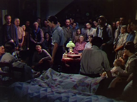 Esto es cosa mía, claro, pero me parece que "Jesse James" presenta un serio desequilibrio entre el Jesse James ícono o leyenda y el Jesse James íntimo y humano, ambas caras presentando su propia narrativa y mitología, algo discordantes entre sí y que hacen tambalear el conjunto. Ahora bien, este tambaleo es más cosa del guión, pues sobre la dirección de King debo decir que casi logra cubrir sus indecisiones amén de una notable construcción atmosférica, especialmente en lo relativo a la tensión in crescendo que continuamente inyectaba fuerza a los aspectos importantes del relato, como la guerra dialéctica que subyace al torrente de causalidades. Por ejemplo, la escena final (ya saben cuál) me parece sobresaliente por la manera en que utiliza el lenguaje cinematográfico (particularmente el sonido, el fuera de campo) como arma retórica; la secuencia de la cárcel también me parece genial, estableciendo amenazas, incertidumbre, interesantes giros... En las escenas de corte más íntimo y humano es en donde King flaquea un poco, como ya he dicho, debido al guión (ya lo explicaré "mejor") y también a un Tyrone Power y una Nancy Kelly que a mí no me convencieron demasiado, pues siento sus interpretaciones someras, como que les faltó dar mística a sus personajes, alimentarse de la energía de la época y su conflicto. No es de extrañar que Henry Fonda se adueñara de cada escena en que aparecía y/o compartía con Powell, pues sumado a la debilidad del segundo, Fonda combina a la perfección la más genuina empatía con la más aterradora violencia en un personaje que ya se encargaría de seguir potenciando en "The return of Frank James".